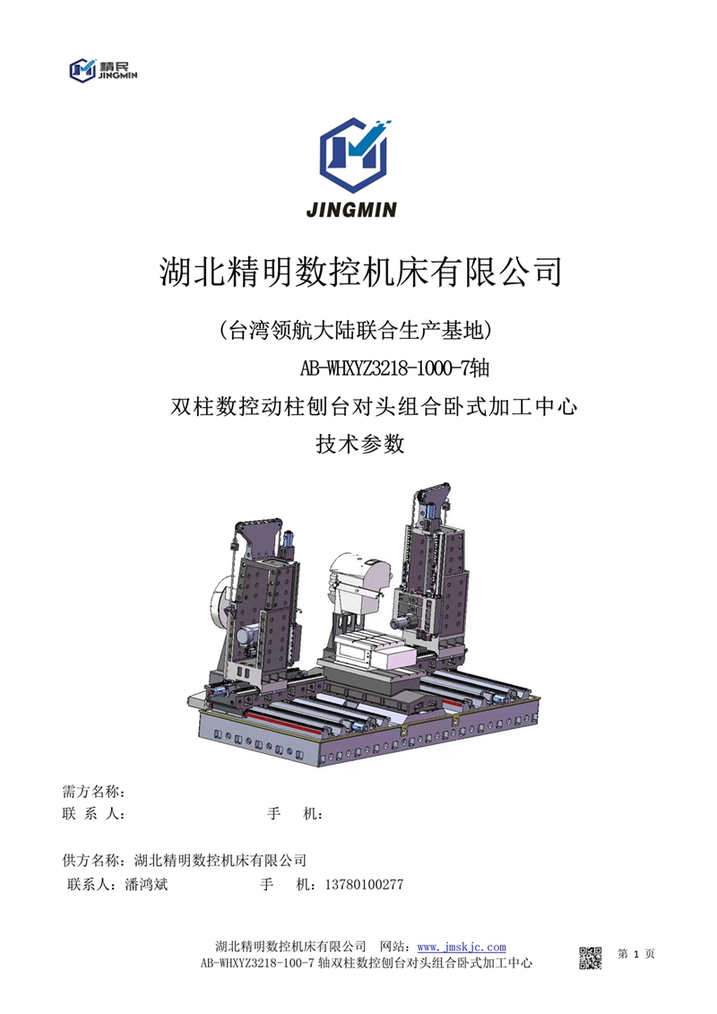whxyz3218-1000-7軸雙柱數控動柱刨臺對頭組合臥式加工中心