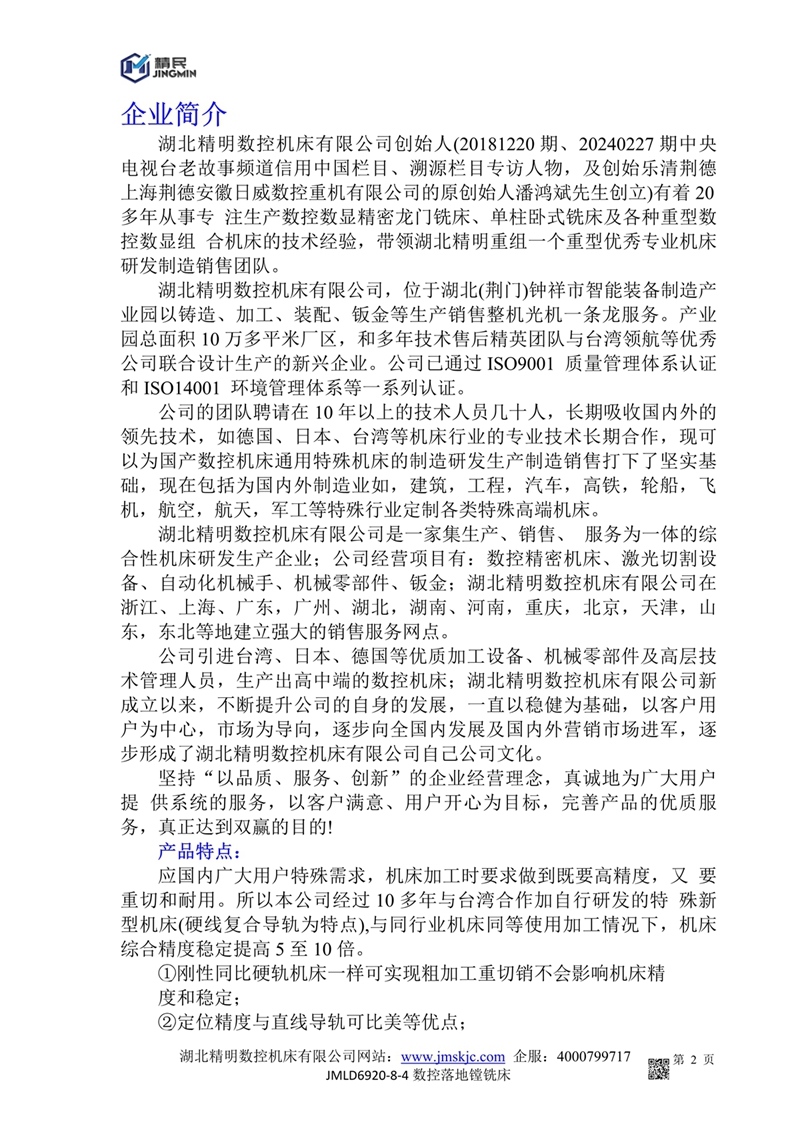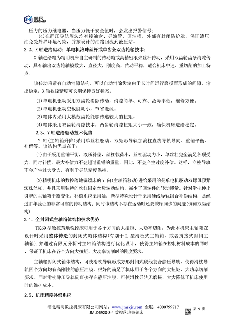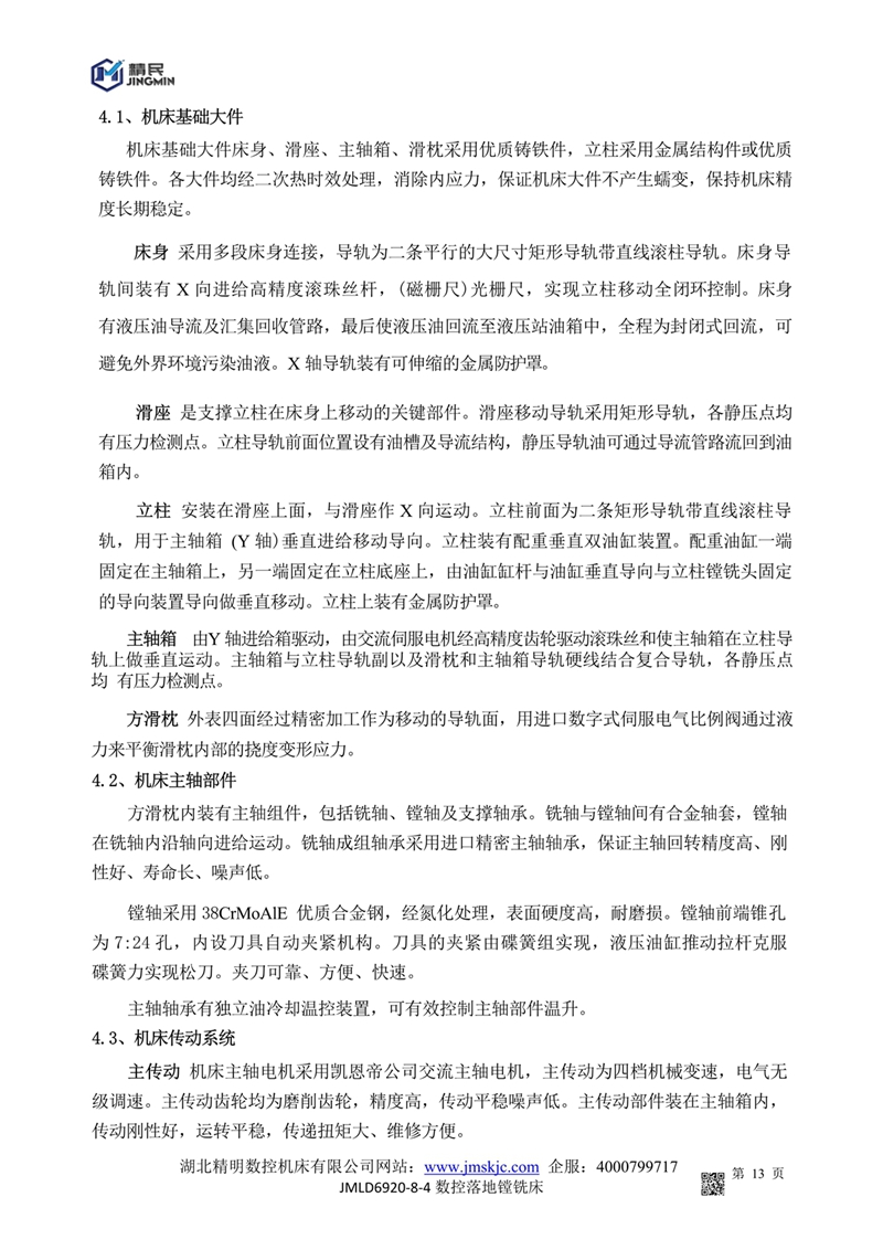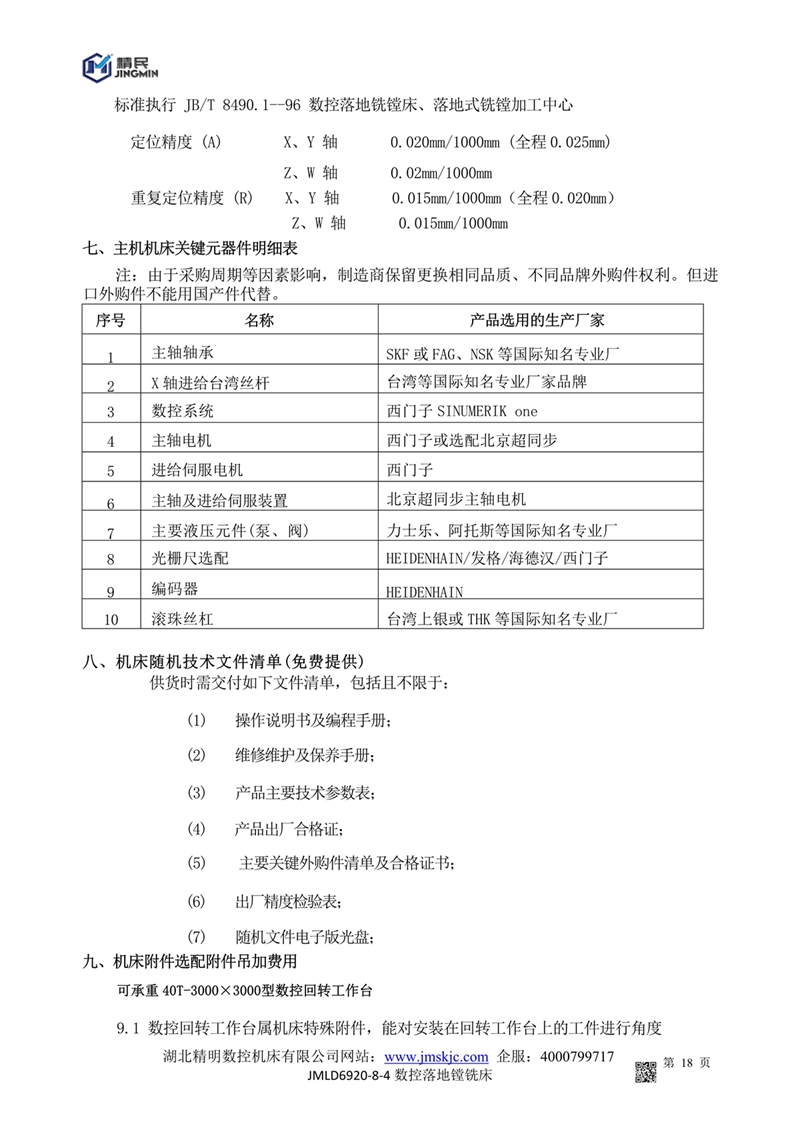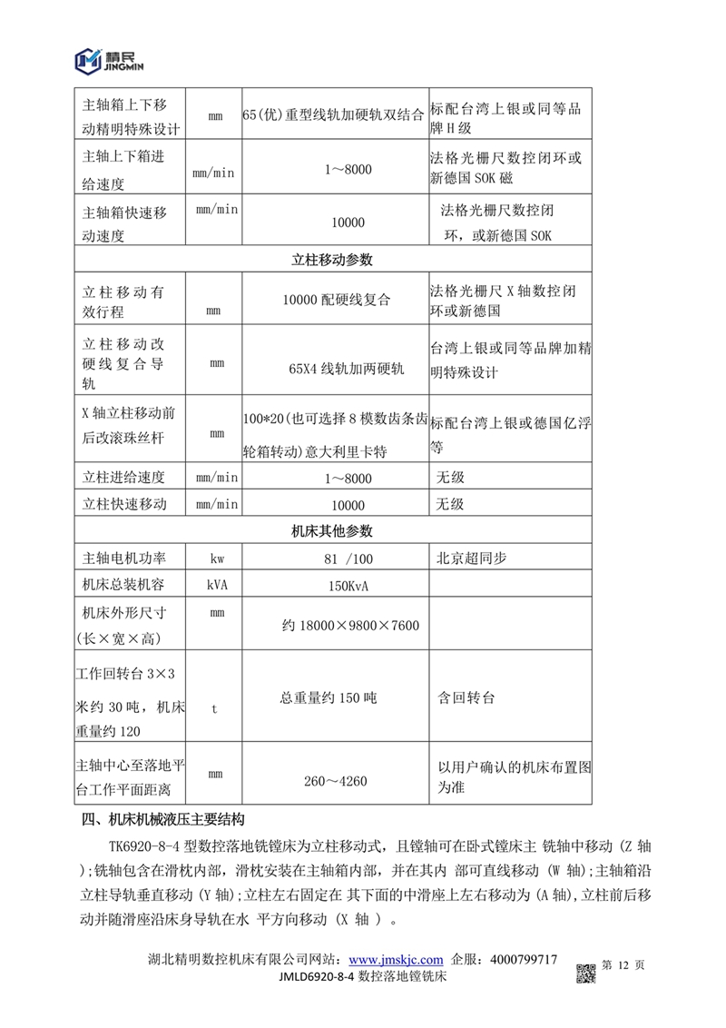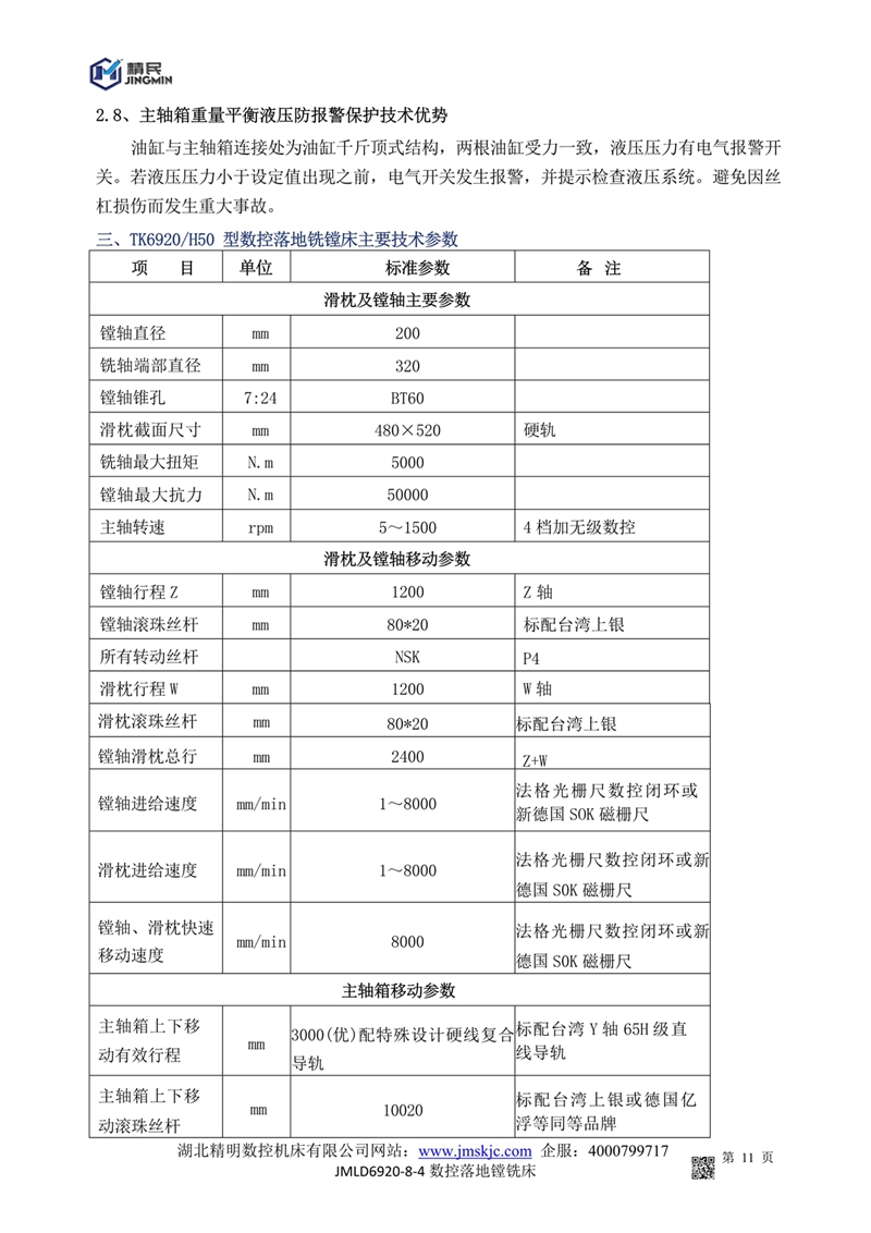 JMLD6920 -8-4數(shù)控落地銑鏜床技術(shù)參數(shù)
