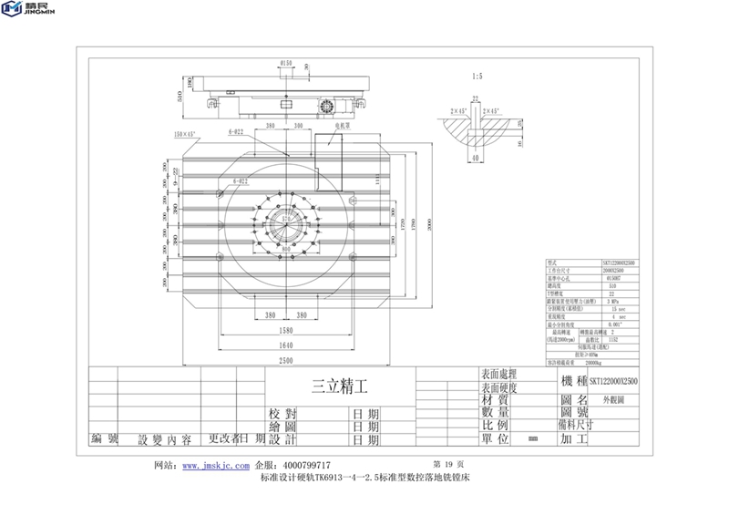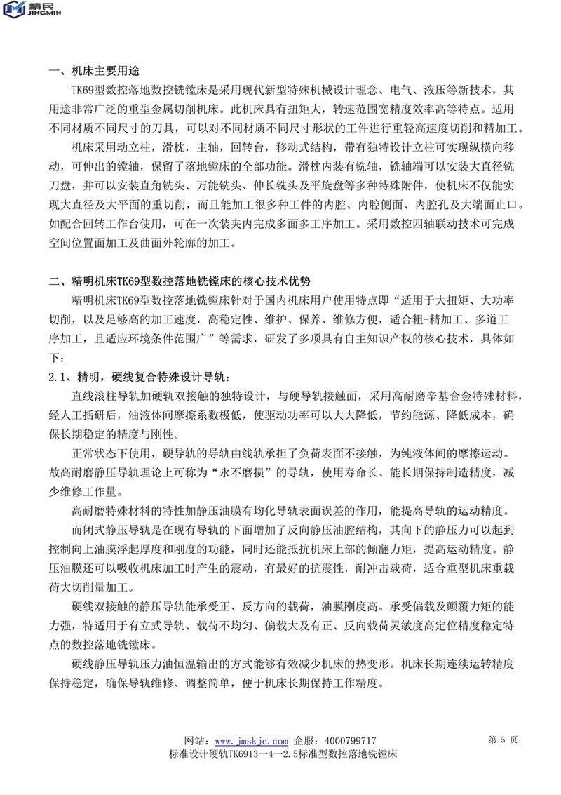 特殊設(shè)計硬線復(fù)合導(dǎo)軌TK6913一4一2.6標(biāo)準(zhǔn)型數(shù)控落地銑鏜床