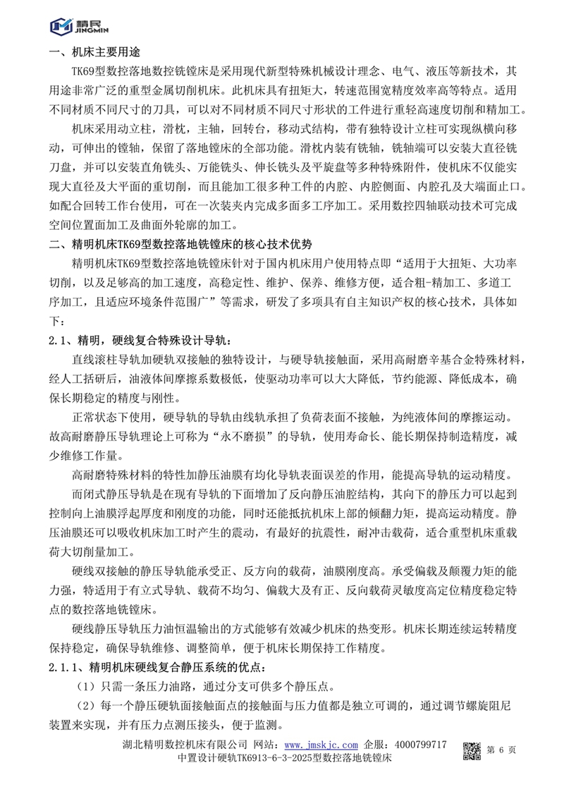 特殊設計中置硬線復合導軌TK6913-6-3-2025型數(shù)控落地銑鏜床
