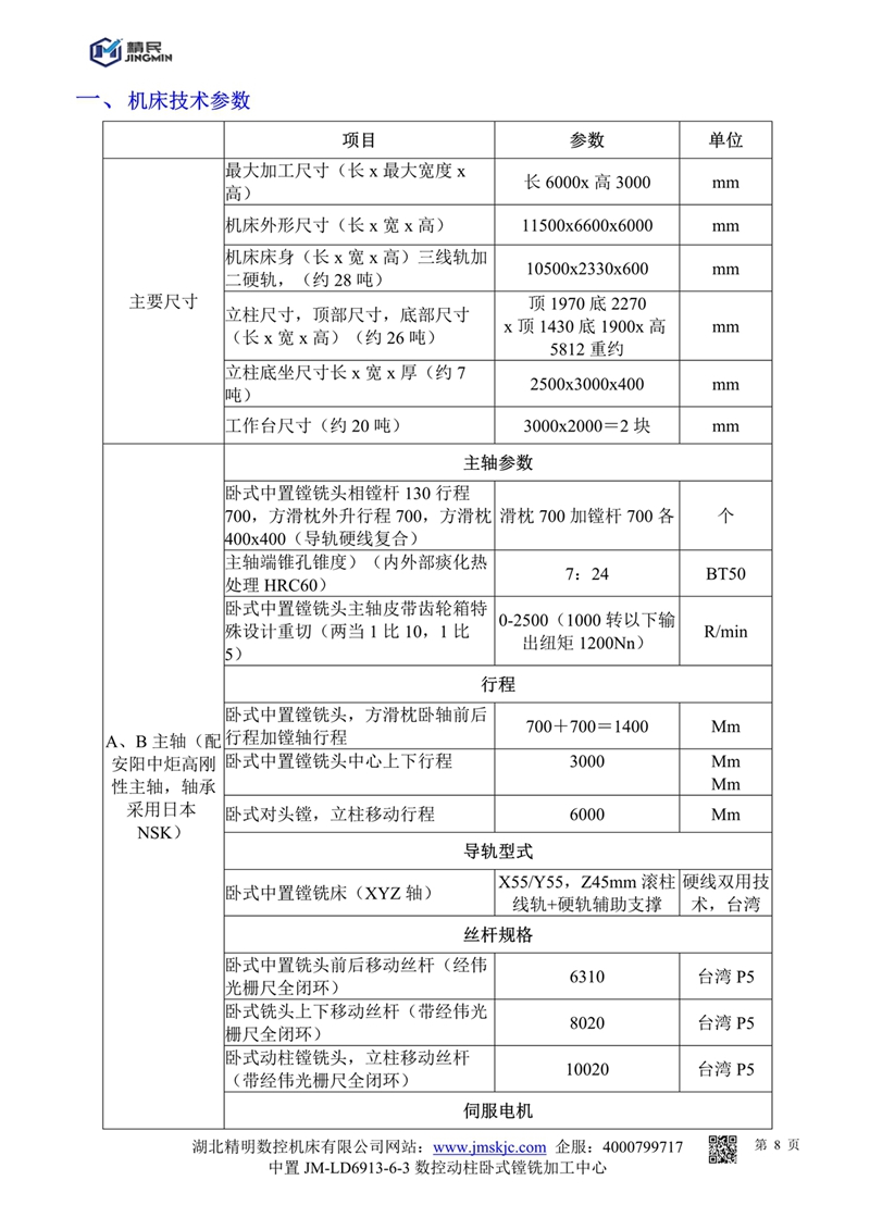 中置三凌M80系統(tǒng)或發(fā)那科0iMF帶全閉環(huán)JM-LD6913一6一3數(shù)控動(dòng)柱臥式落地鏜銑中心