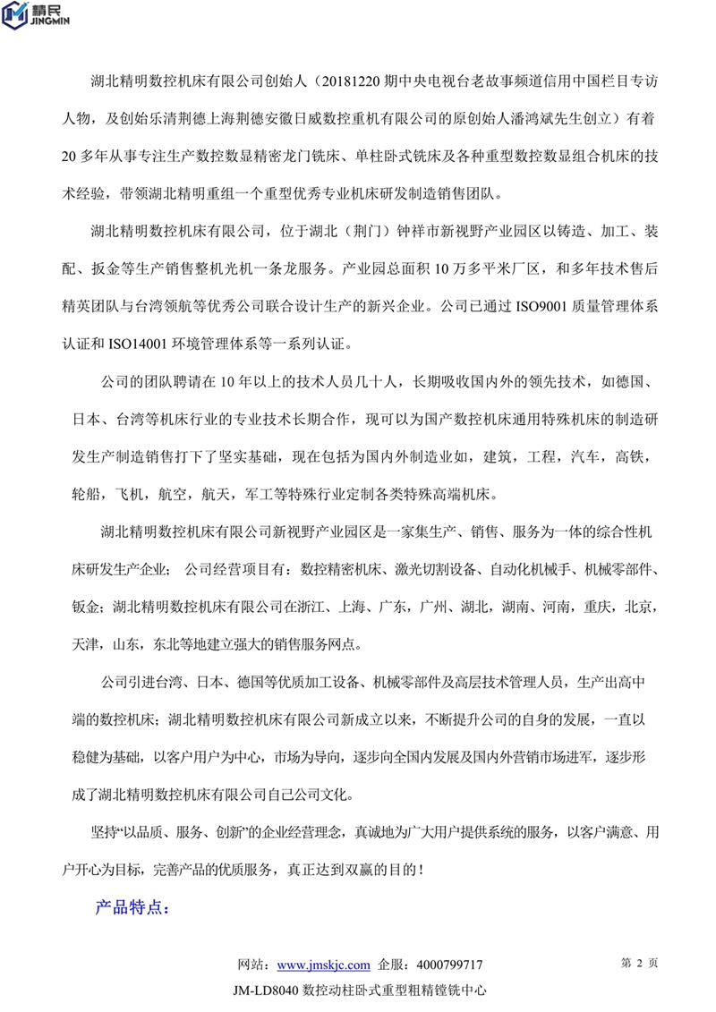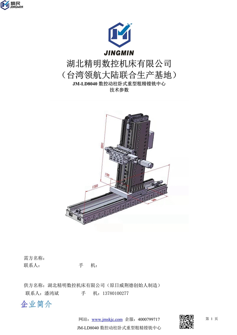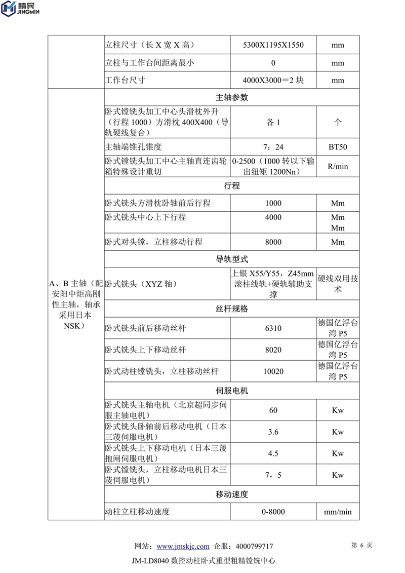 JM-LD8040數(shù)控動(dòng)柱臥式重型粗精鏜銑中心