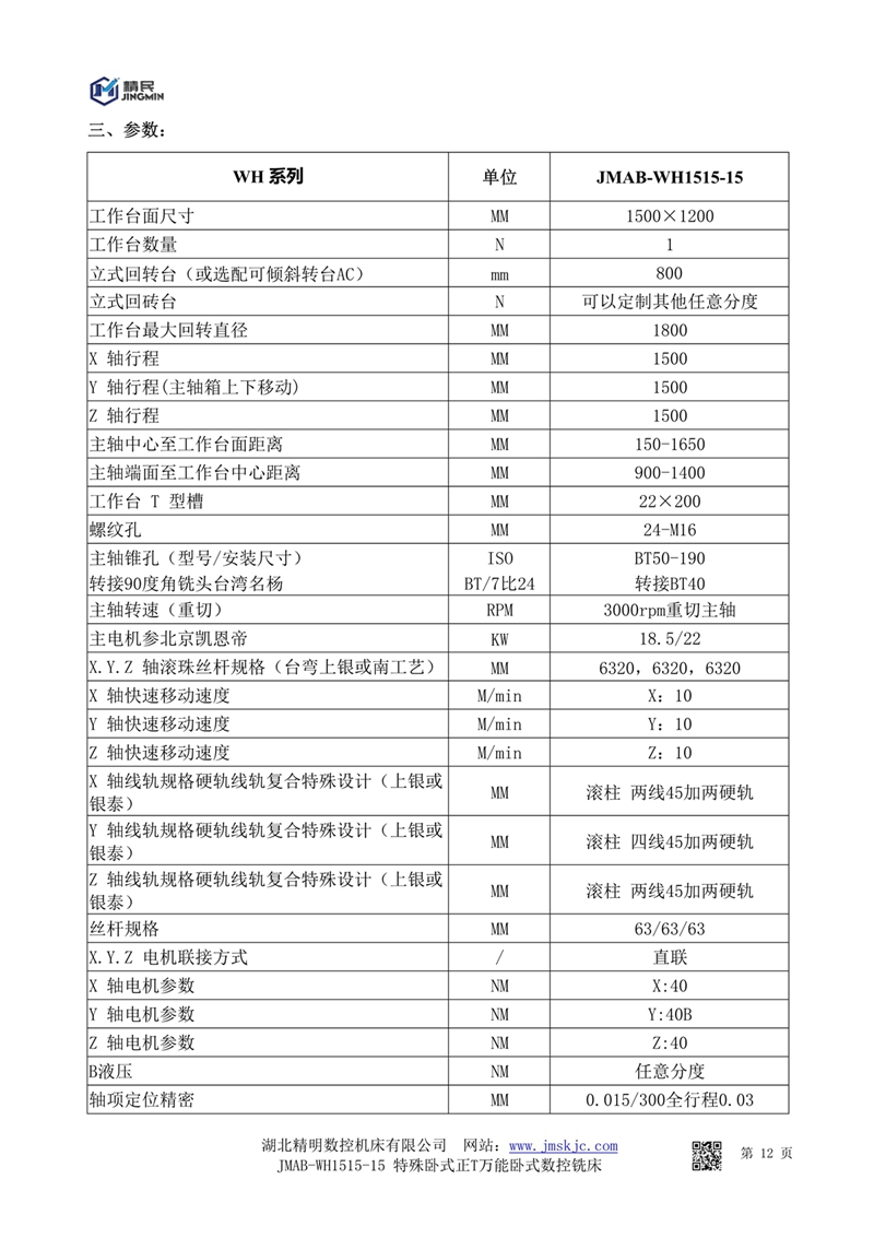 JM-WH1515-15正T特殊萬能臥式數(shù)控銑床