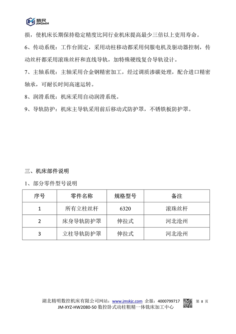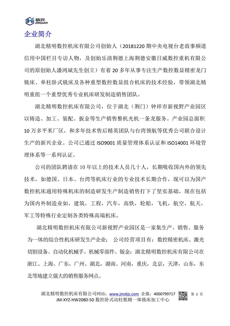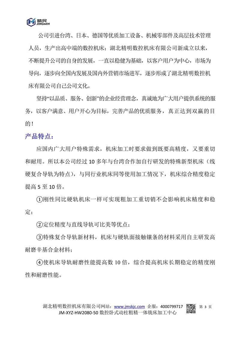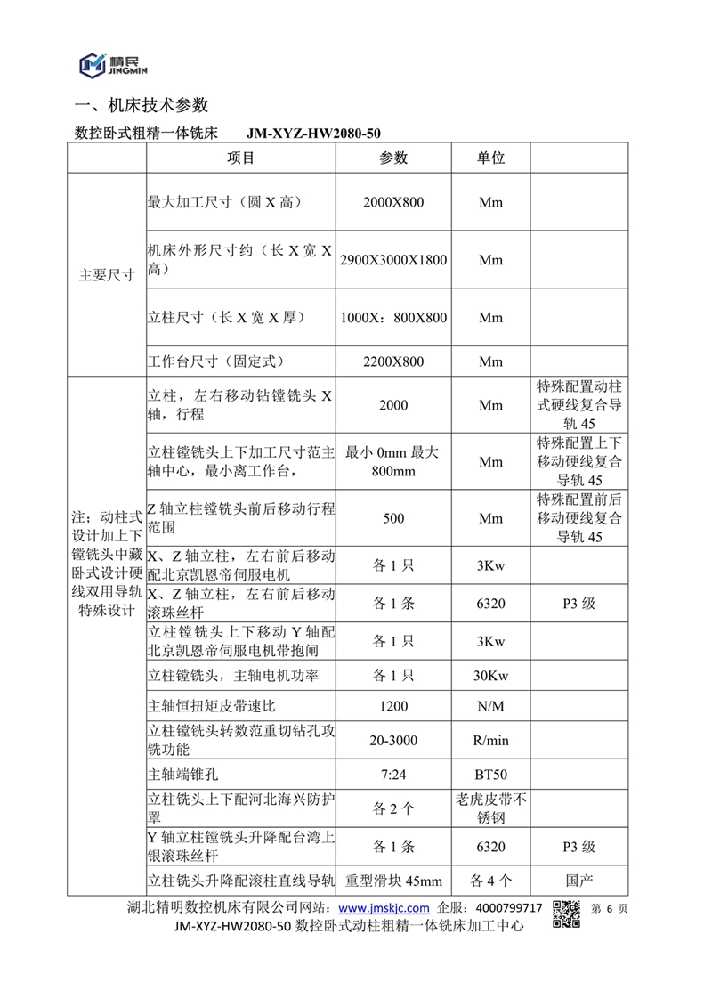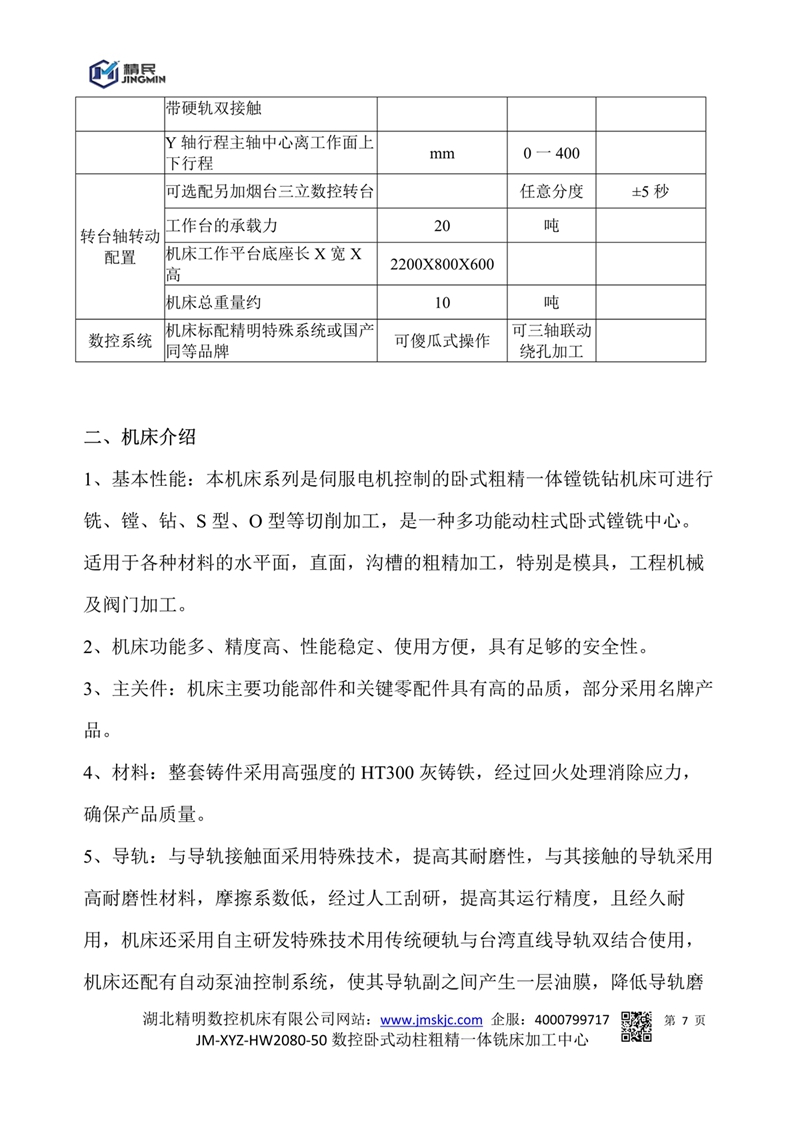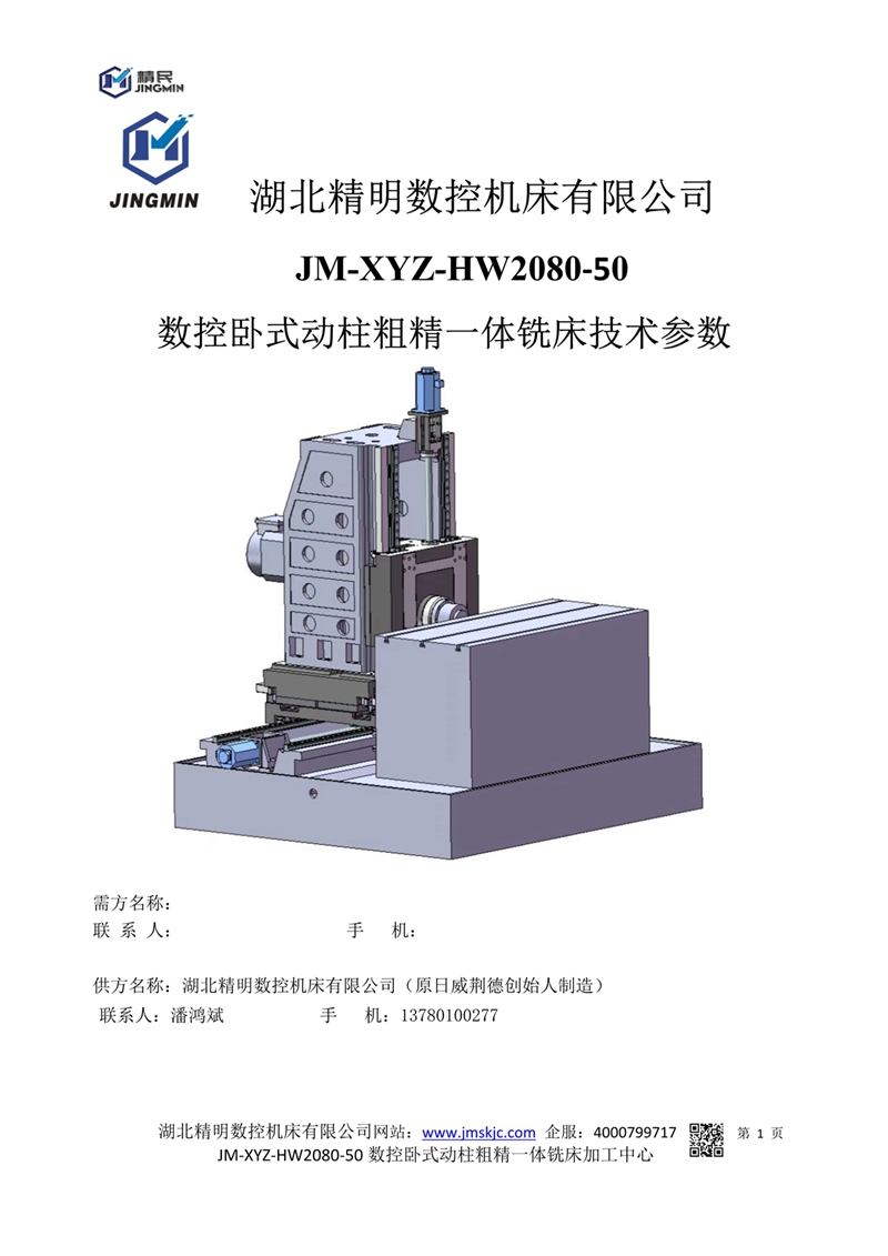 JM-XYZ-HW2080-50臥式動(dòng)柱數(shù)控粗精一體銑鉆床技術(shù)參數(shù)