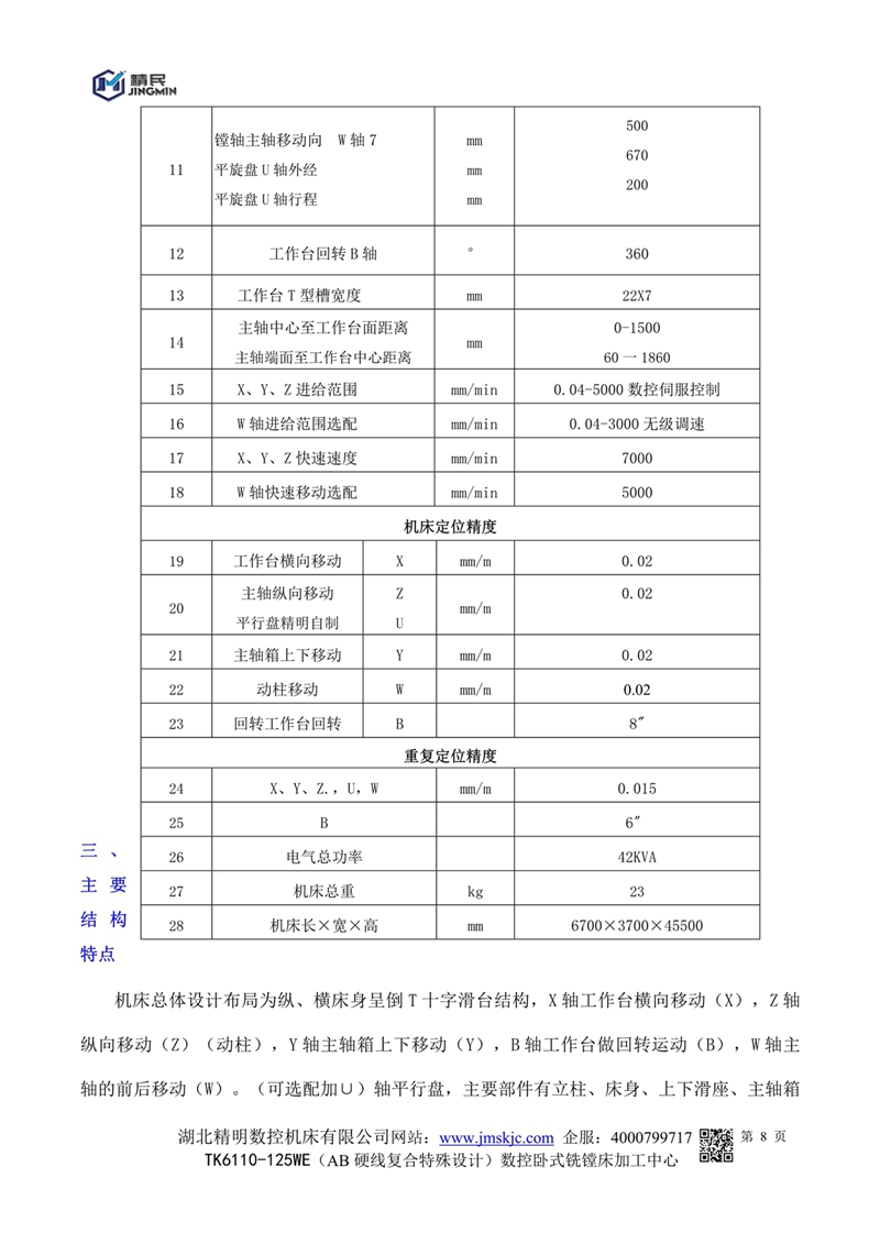 湖北精明TK6110-125WE數(shù)控臥式鏜銑床