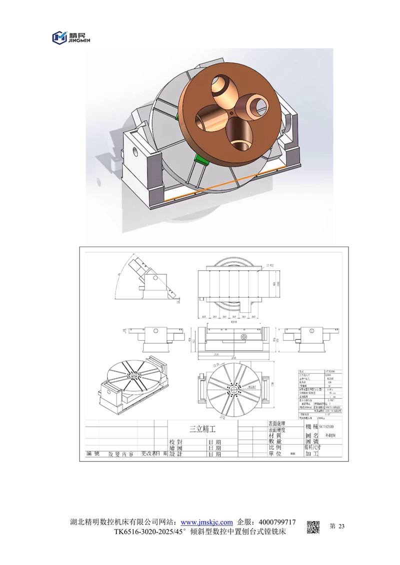 TK6516-3020一2025傾斜45度圓轉(zhuǎn)臺西門子828D系統(tǒng)數(shù)控中置刨臺式鏜銑床