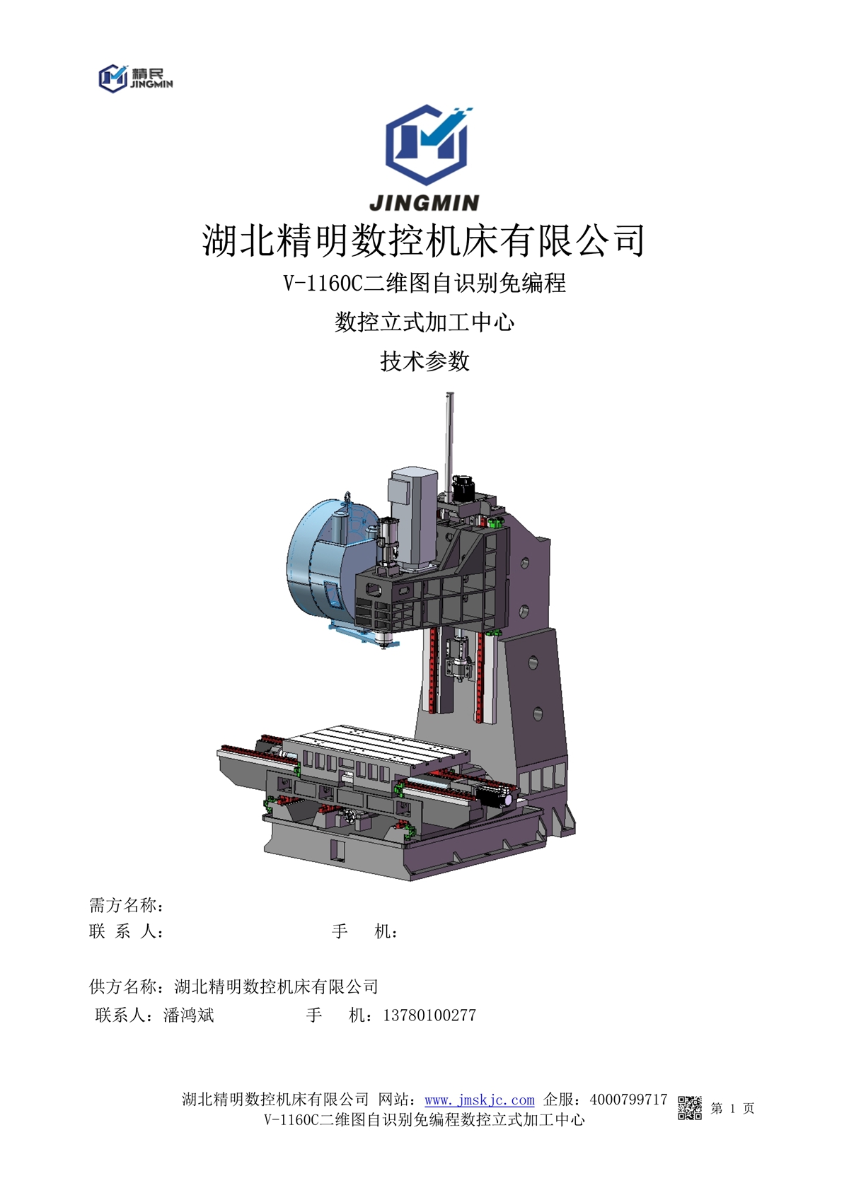V-1160C二維圖自識(shí)別免編程數(shù)控立式加工中心技術(shù)參數(shù)