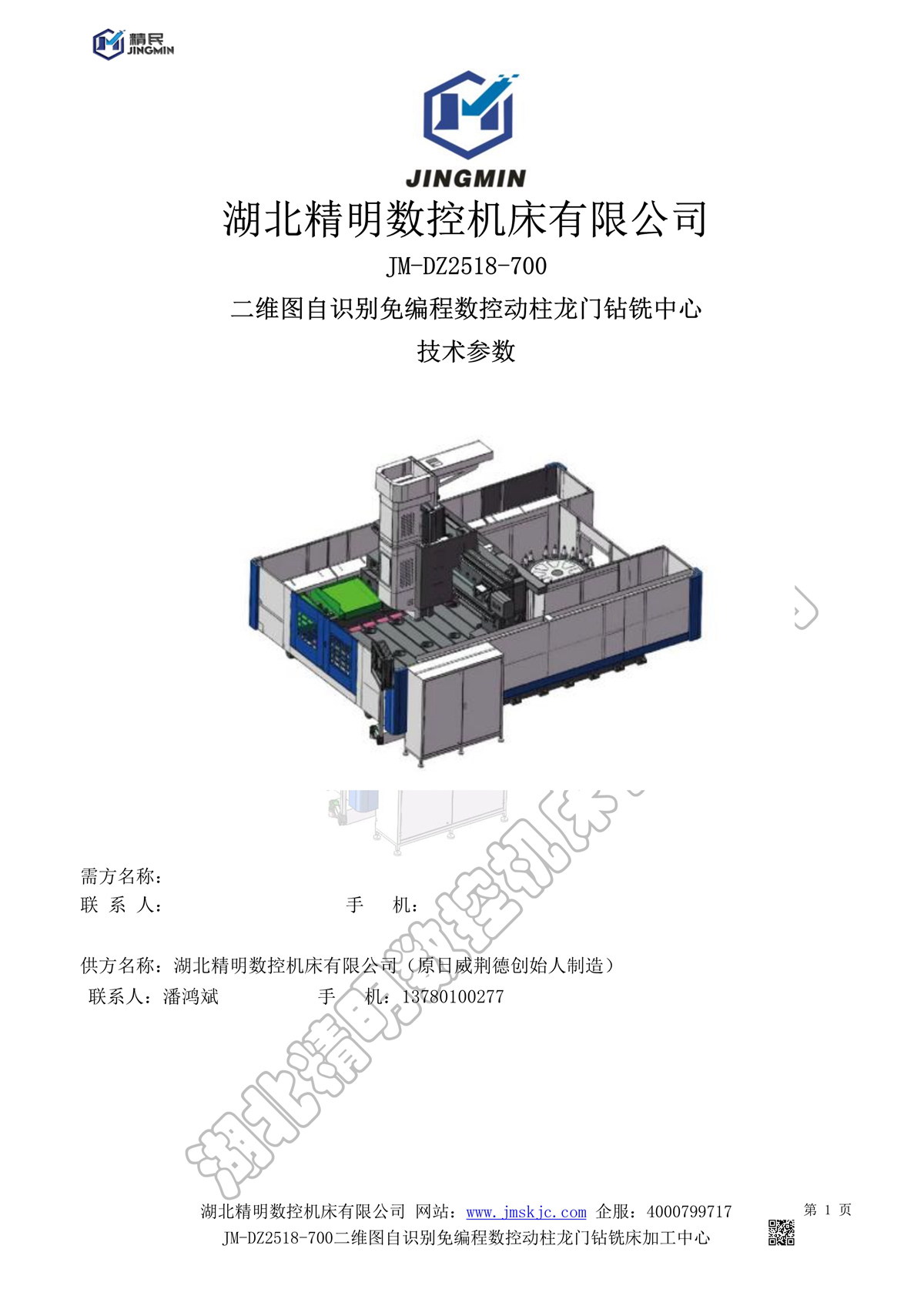6_JMDZ一2518一700二維圖自識(shí)別免編程數(shù)控動(dòng)柱龍門(mén)鉆銑中心