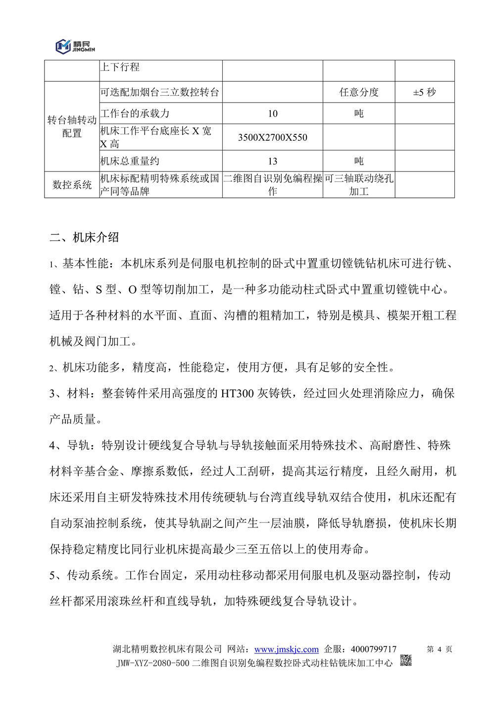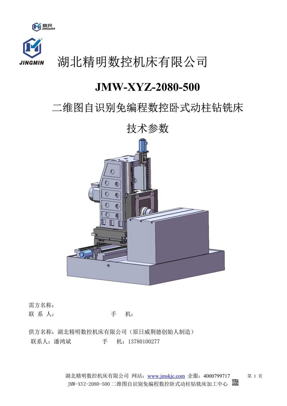 精明JMW一XYZ2080一500二維圖自識別編程臥式鉆銑中心