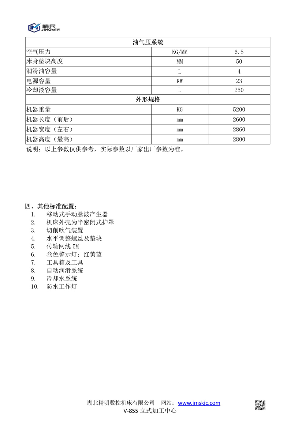 V-855立式臥加技術(shù)參數(shù)