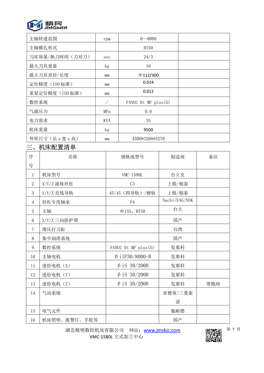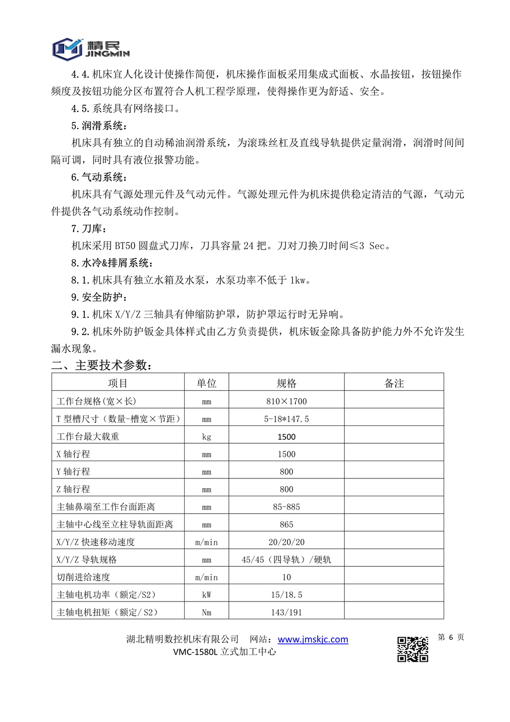 VMC-1580L立式加工中心20220714-2號技術(shù)參數(shù)