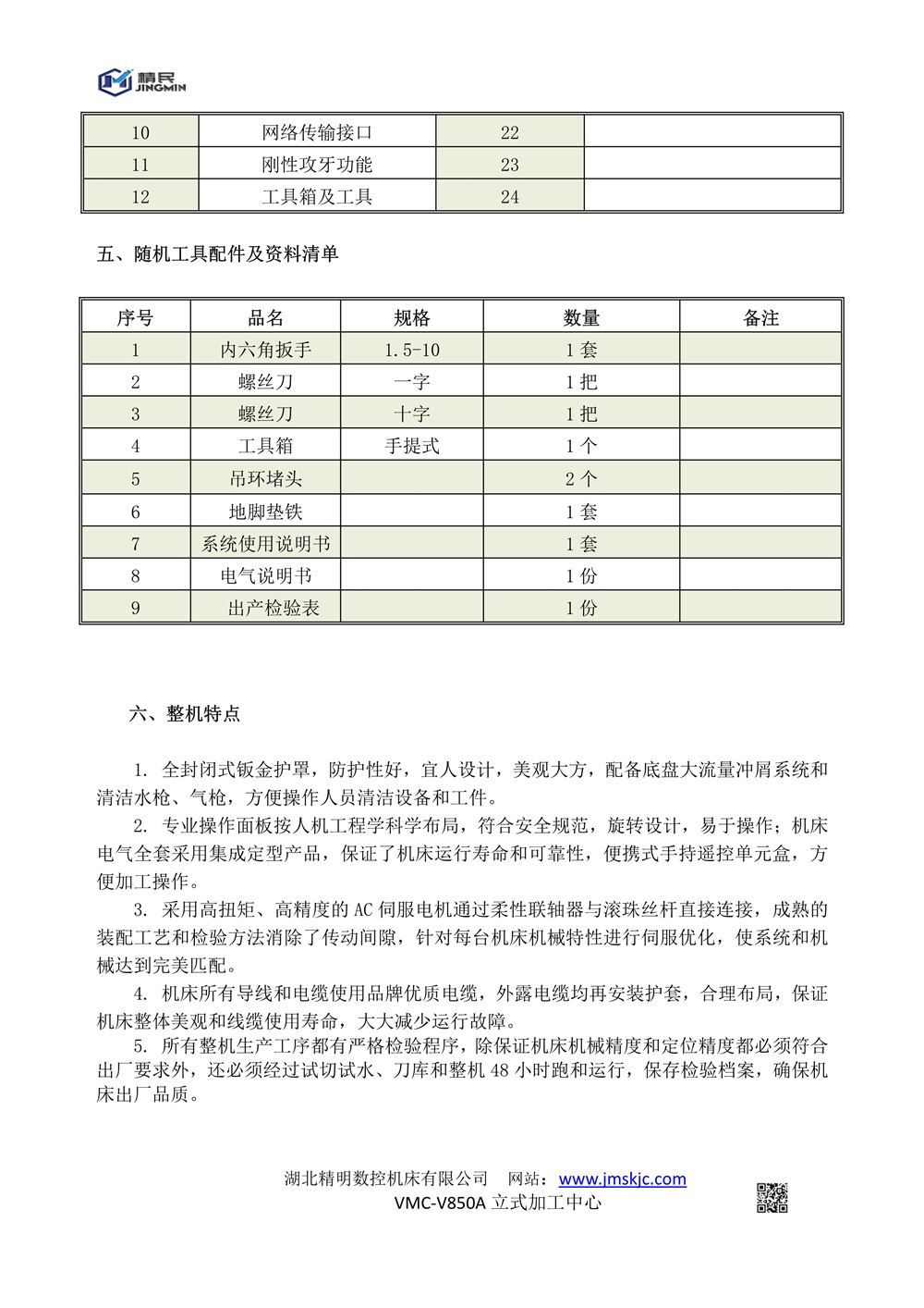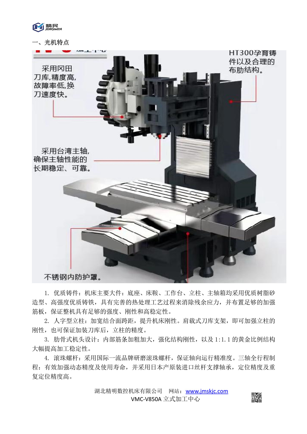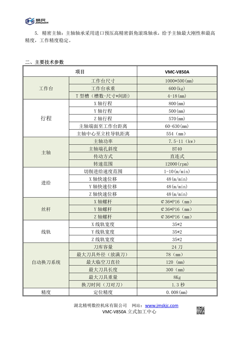 VMC-V850A立式加工中心技術(shù)參數(shù)