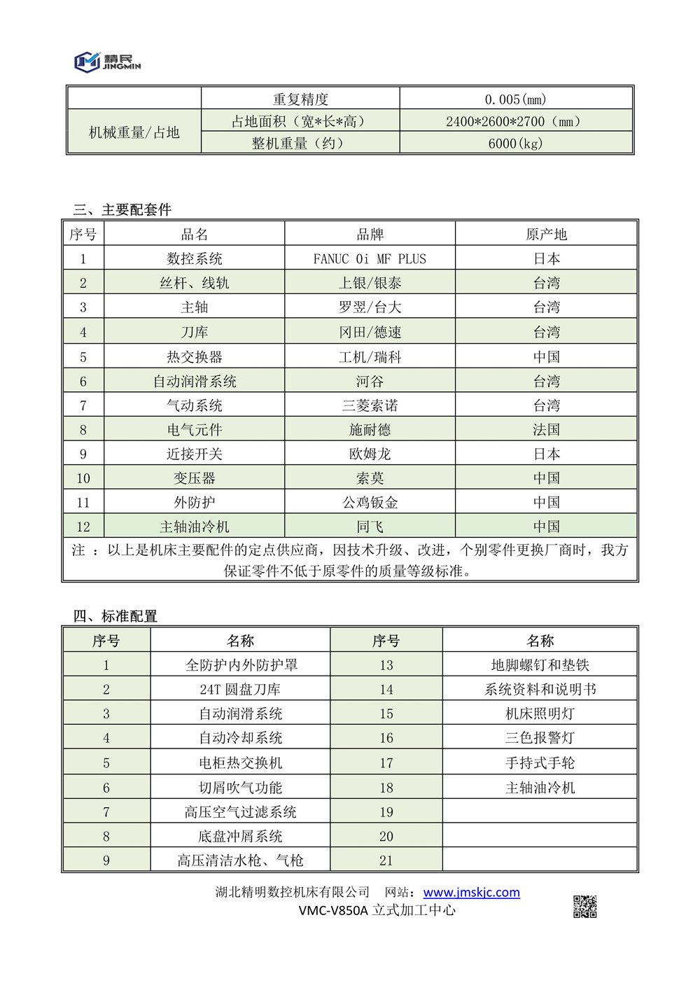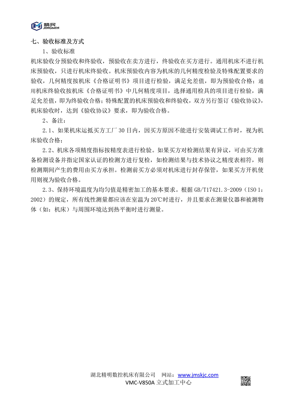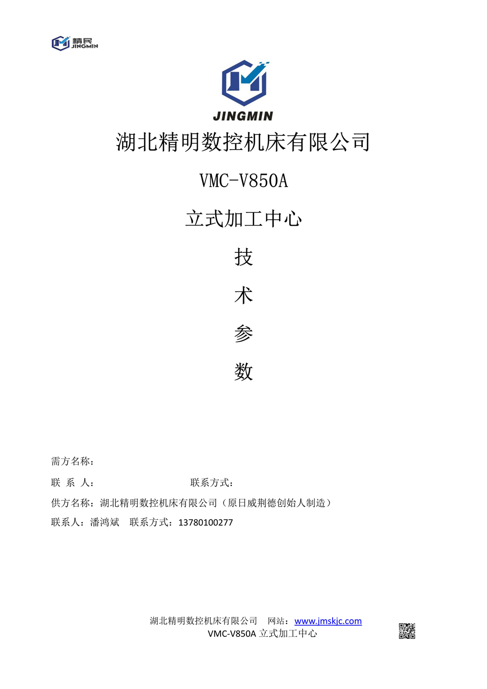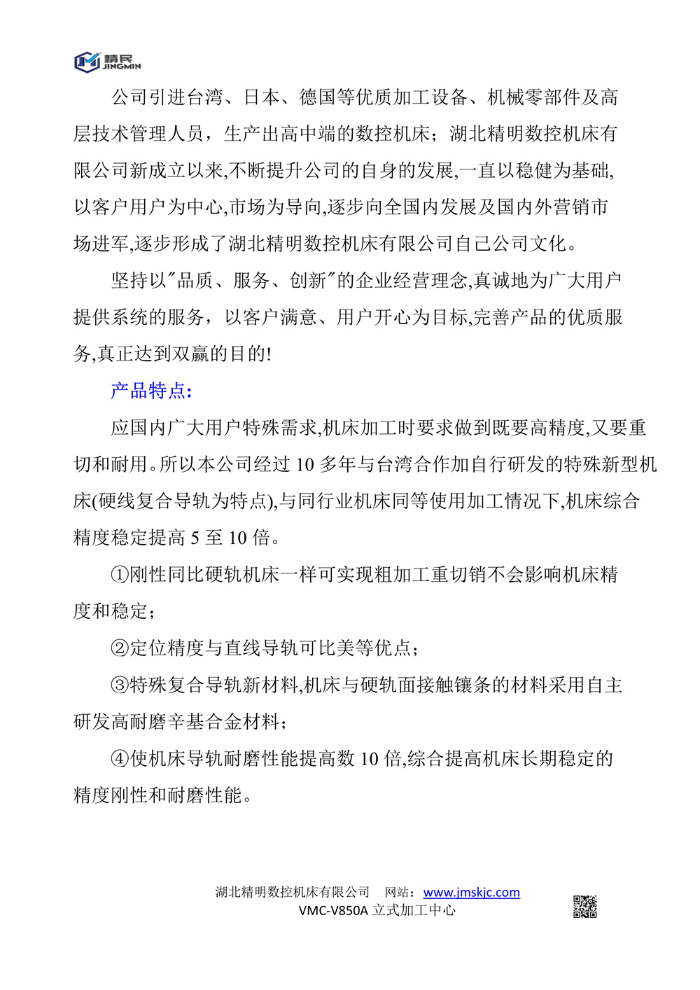 VMC-V850A立式加工中心技術(shù)參數(shù)