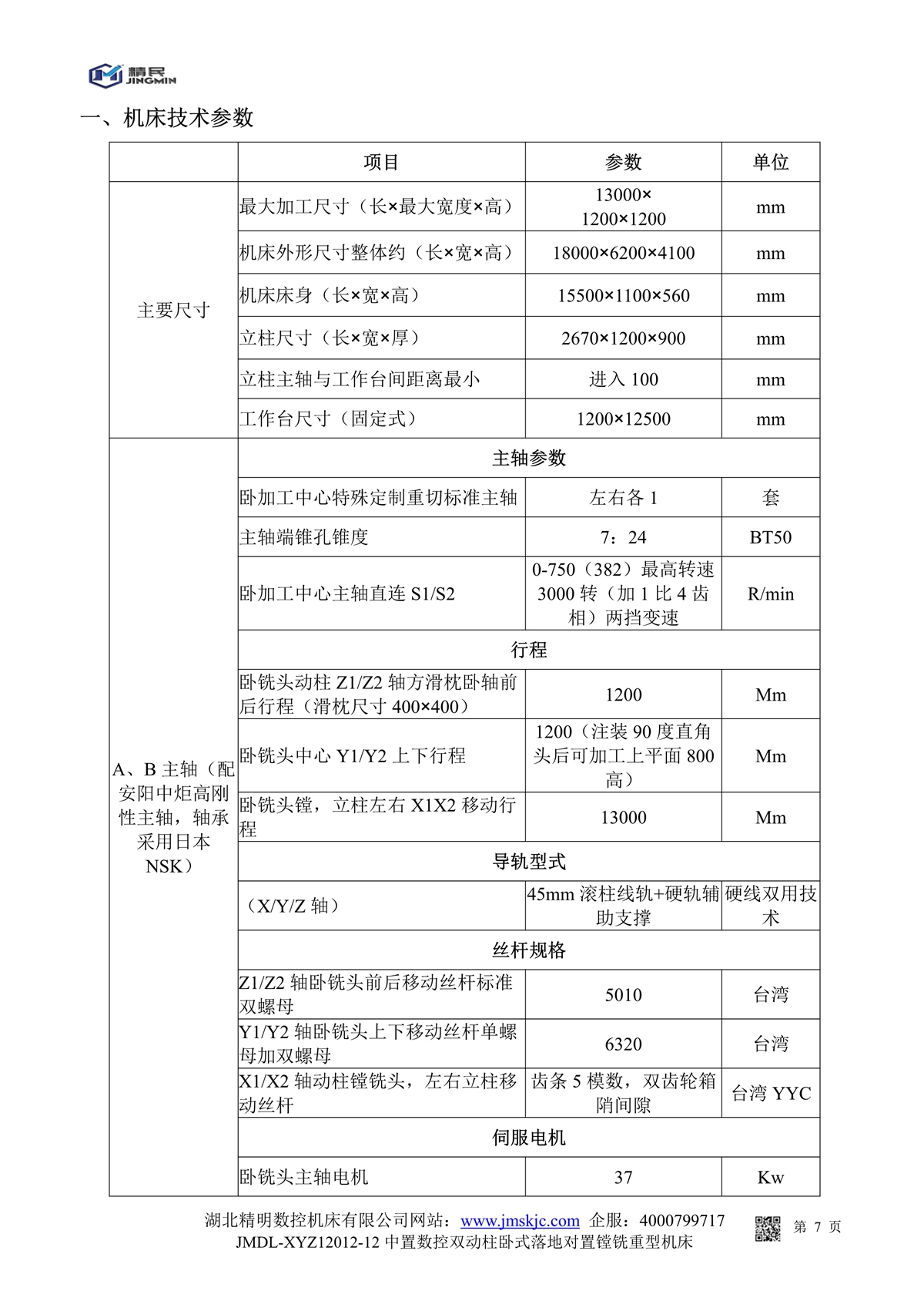 JMDL-XYZ12012數(shù)控動(dòng)柱臥式落地重型機(jī)床技術(shù)參數(shù)