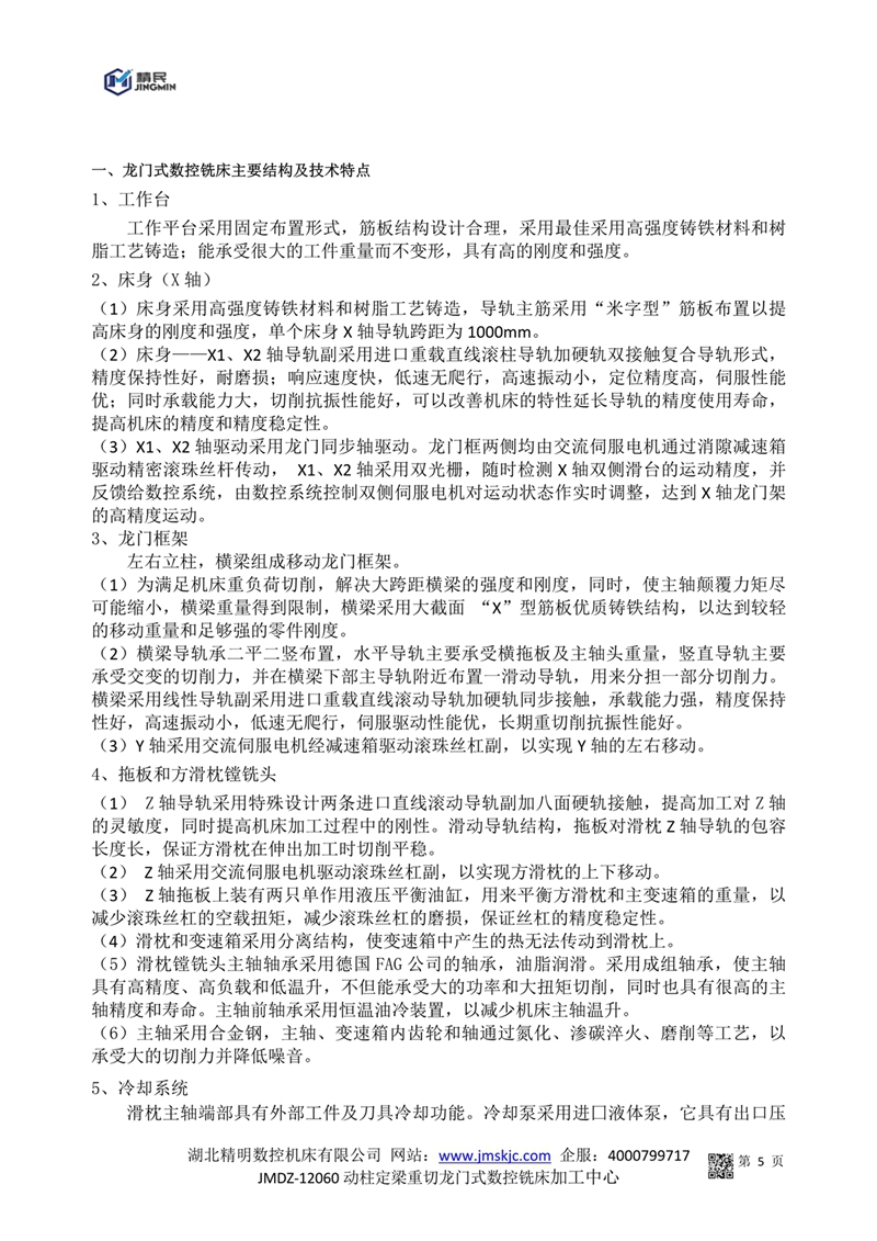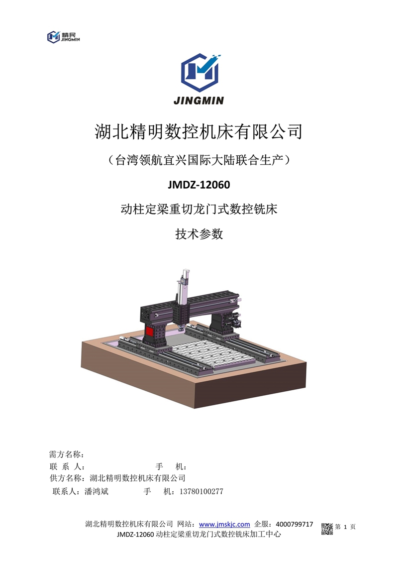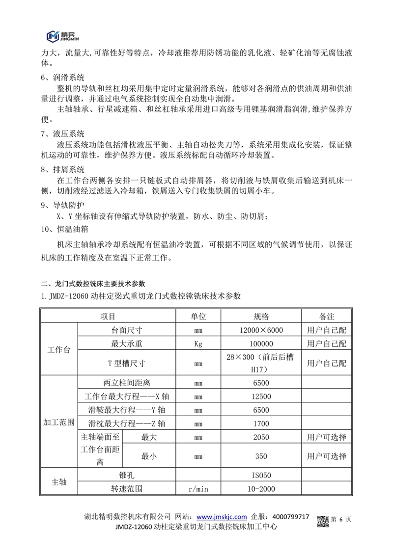 JMDZ-12060動柱定梁重切龍門式數(shù)控銑床技術(shù)參數(shù)