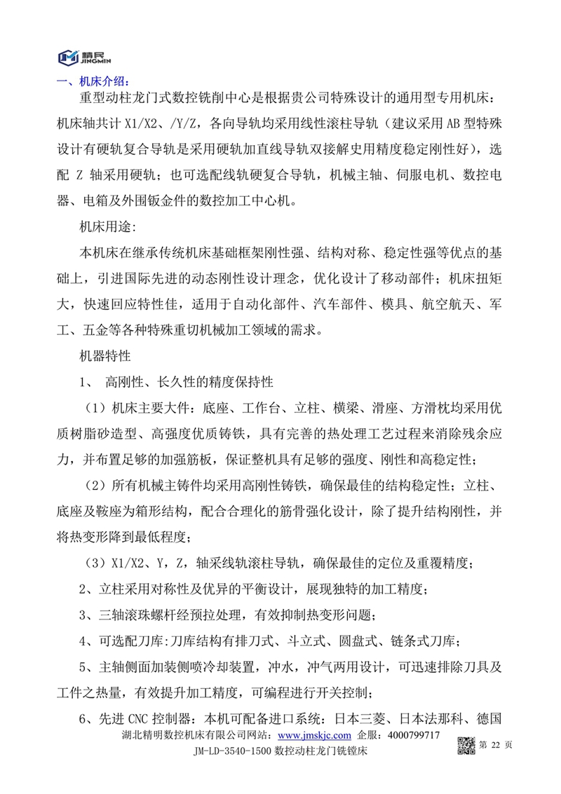 JM-LD-3540-1500數(shù)控動柱龍門加工中心