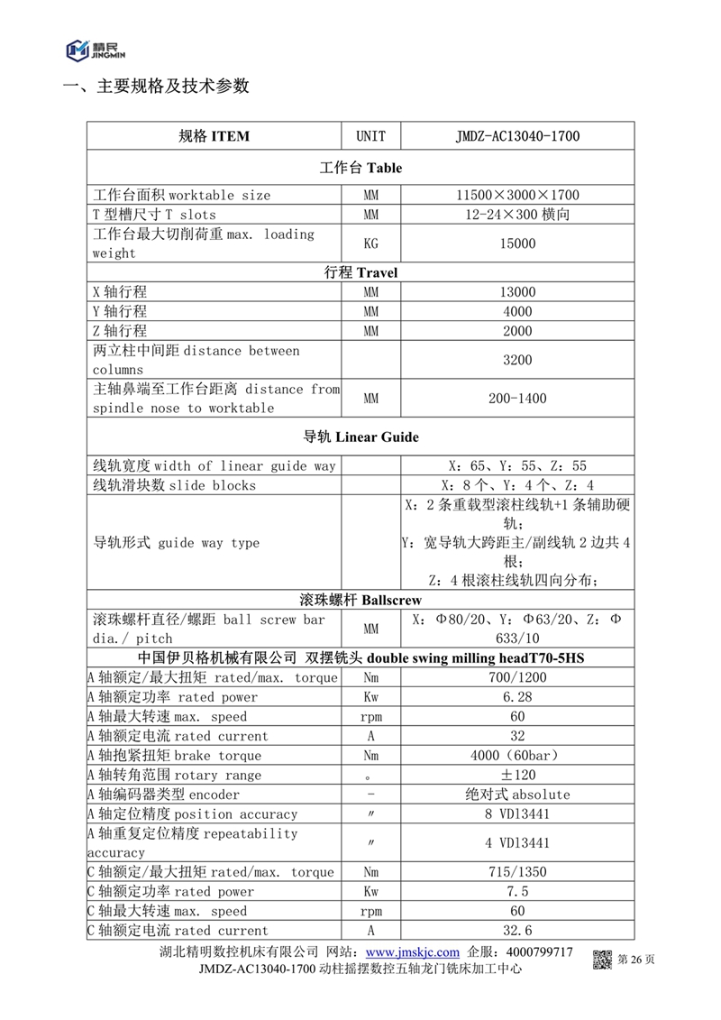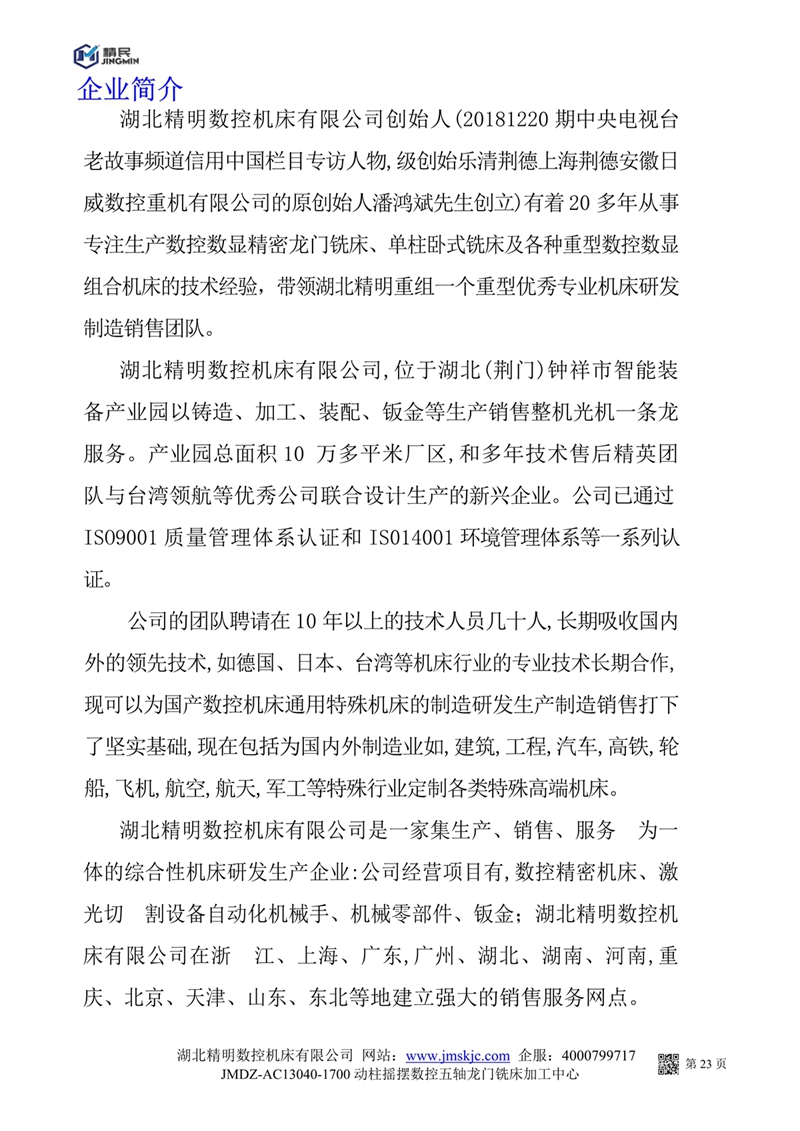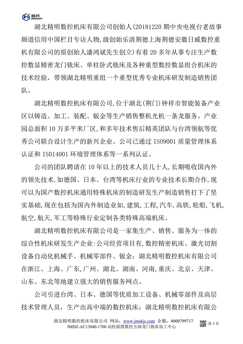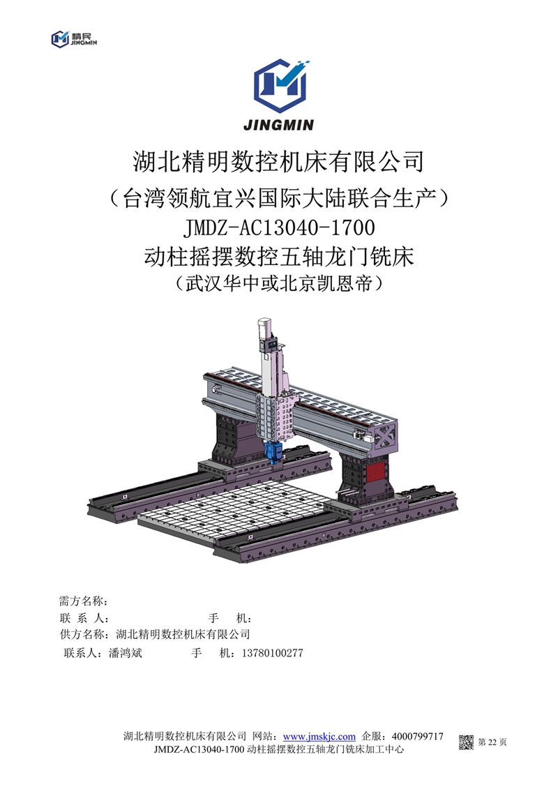 JMDZ一AC13040一1700動柱搖擺數(shù)控五軸龍門銑床系統(tǒng)