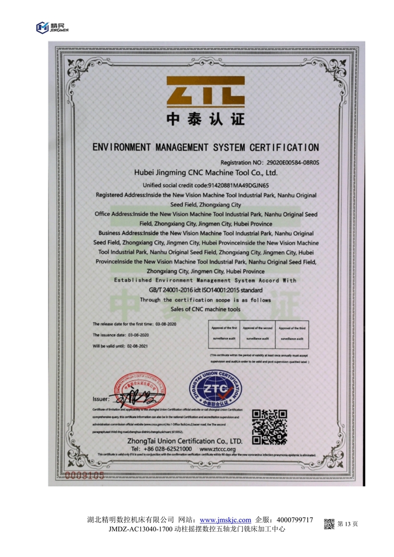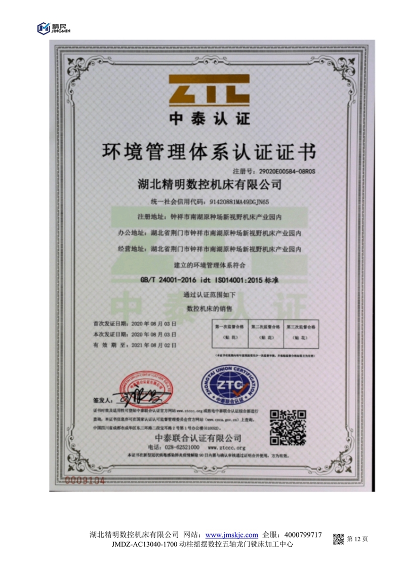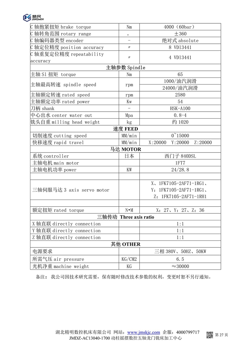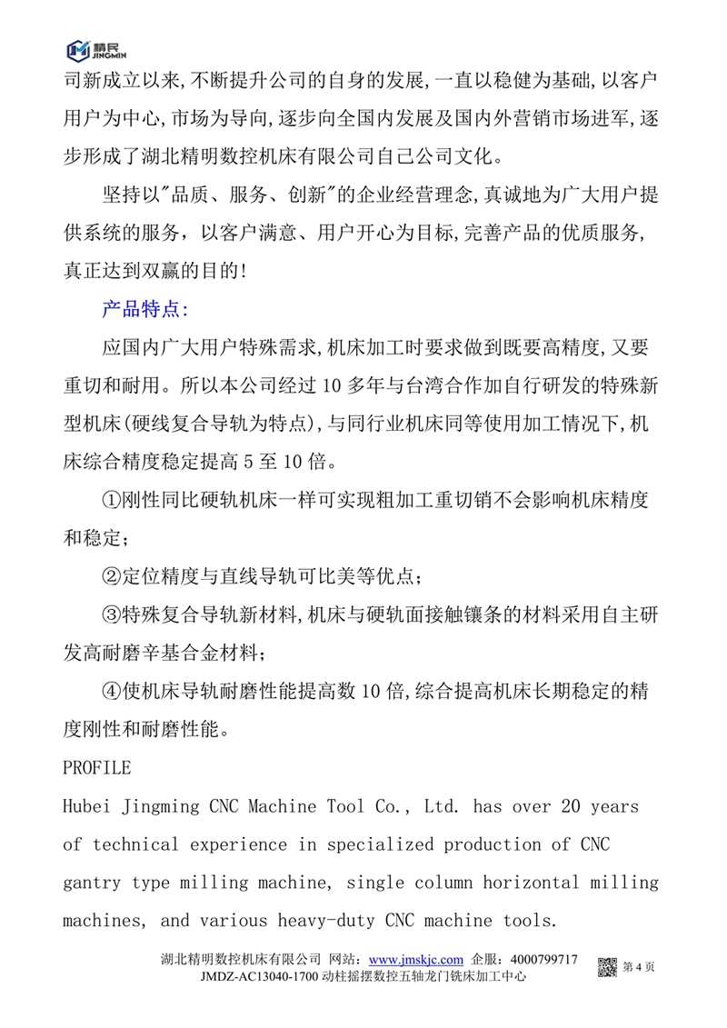 JMDZ一AC13040一1700動柱搖擺數(shù)控五軸龍門銑床系統(tǒng)