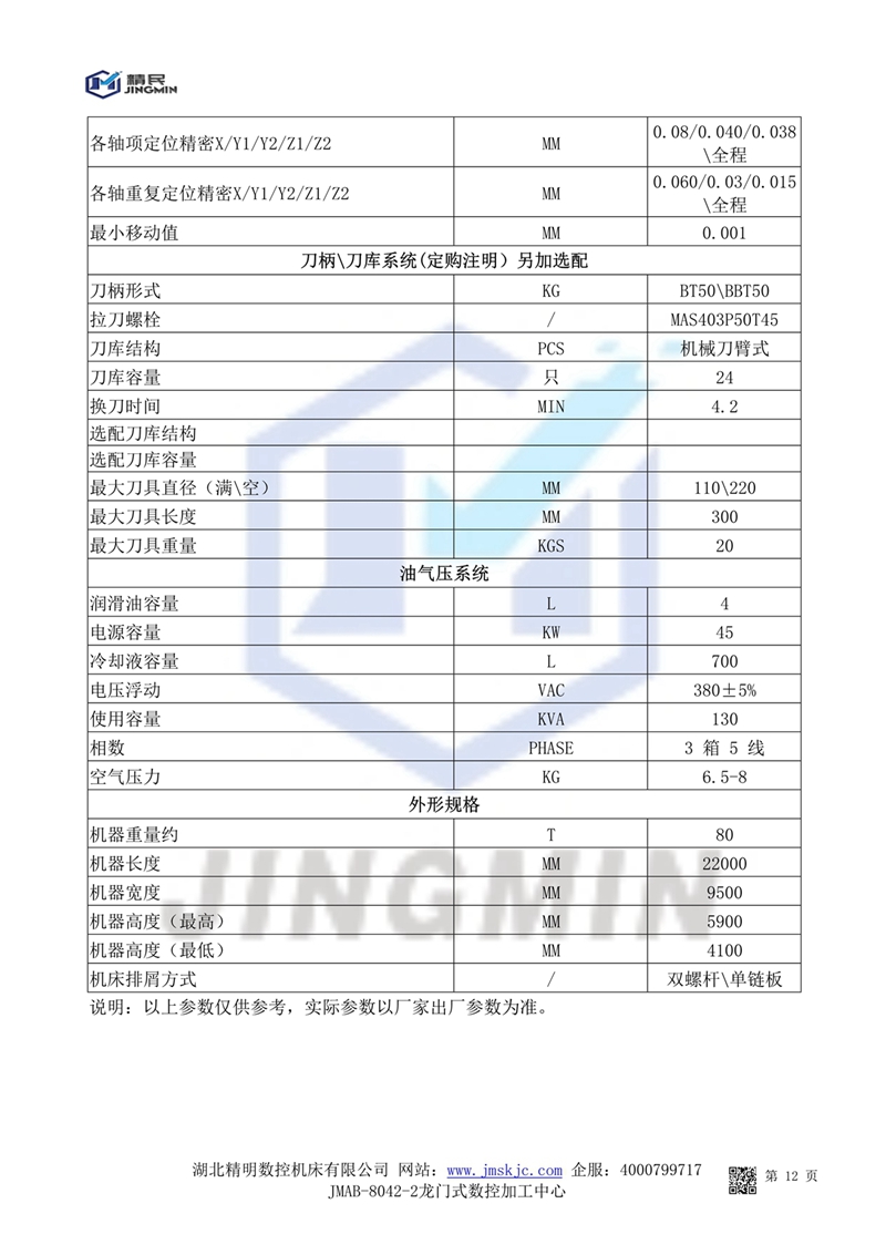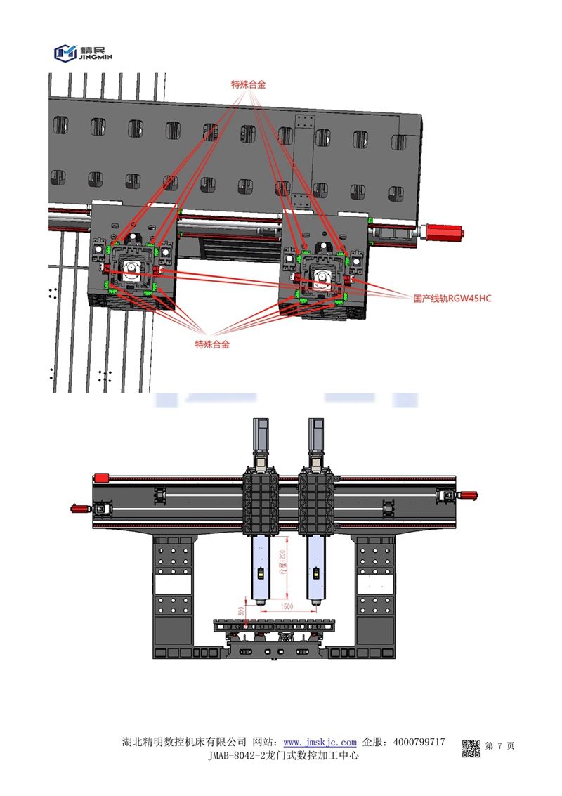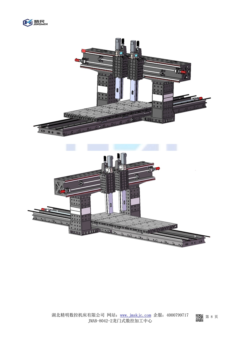 全國產(chǎn)動工作臺數(shù)控定梁龍門銑床JMAB-8042一2帶雙全自動90度角度頭