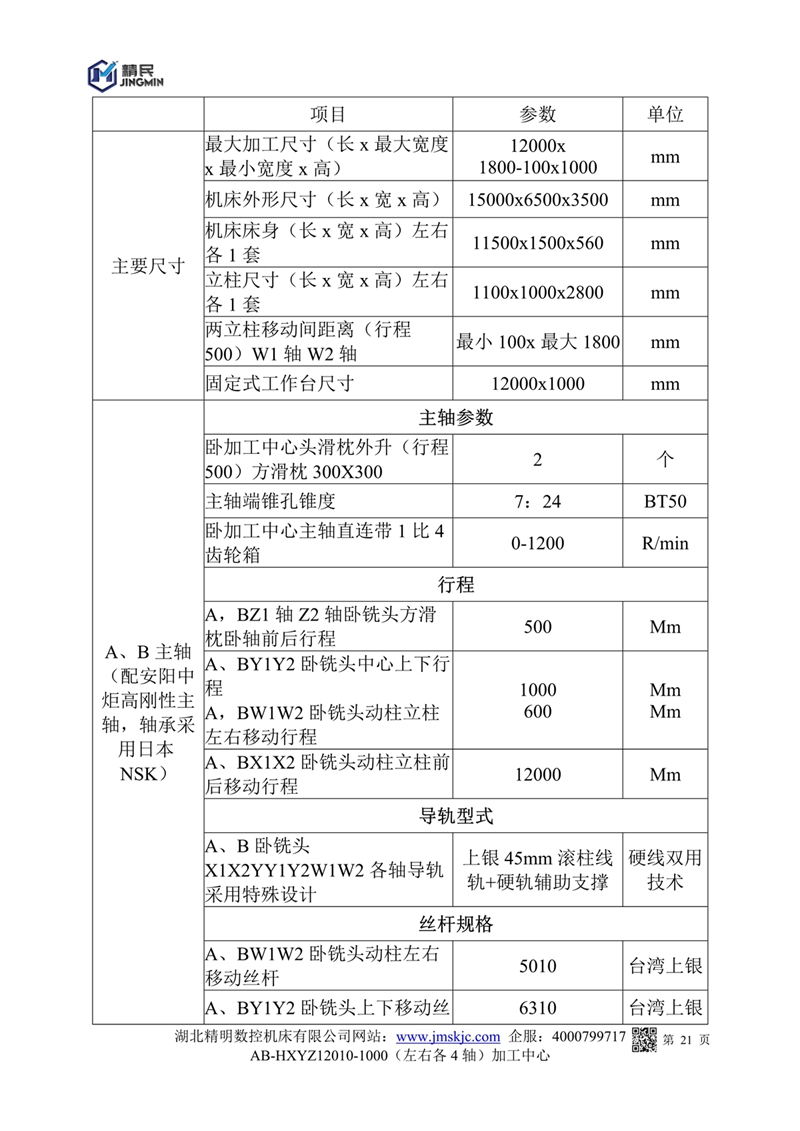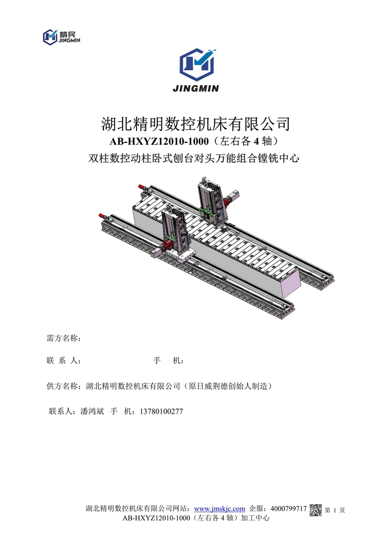 AB-HXYZW12010一1000左右雙柱數(shù)控動柱刨臺對頭萬能組合鏜銑中心20201227